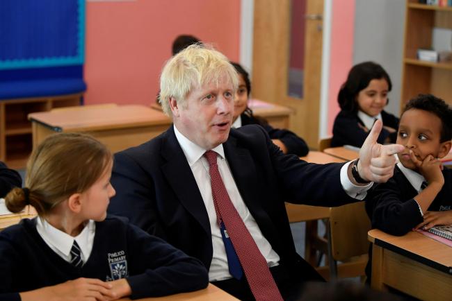 Prime Minister Boris Johnson chats with school children. Picture: Toby Melville/PA Wire