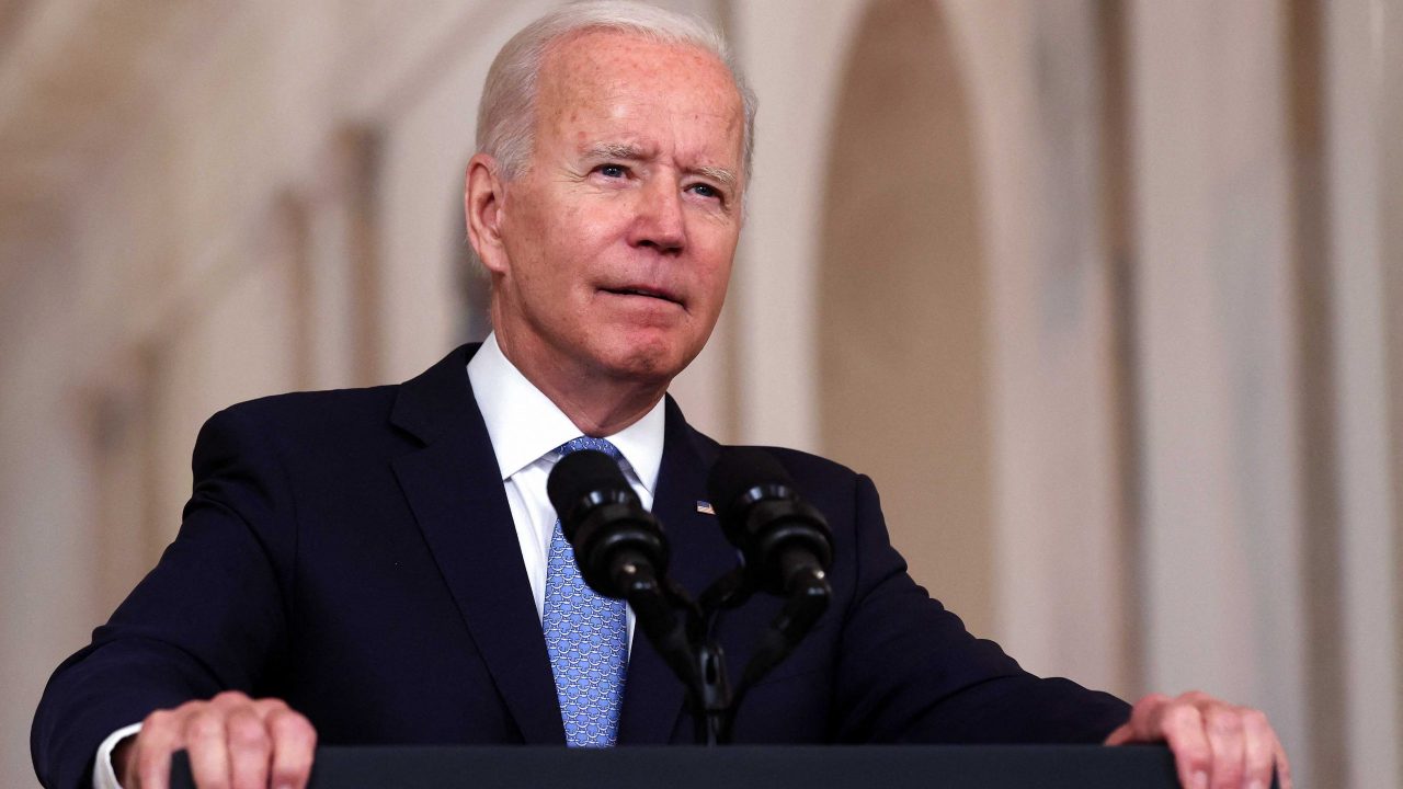 WASHINGTON, DC – AUGUST 31: U.S. President Joe Biden delivers remarks on the end of the war in Afghanistan in the State Dining Room at the White House on August 31, 2021 in Washington, DC. The last American military aircraft took off from Hamid Karzai Airport a few minutes before midnight in Kabul, marking the end of U.S. military presence in Afghanistan since the invasion following the attacks of September 11, 2001. Chip Somodevilla/Getty Images/AFP (Photo by CHIP SOMODEVILLA / GETTY IMAGES NORTH AMERICA / Getty Images via AFP)