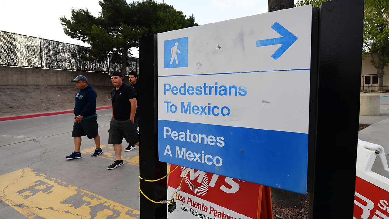 People enter the US at the Otay Mesa port of entry at the US-Mexico border in San Diego, California on June 8, 2019. - US President Donald Trump touted on Saturday his last-minute deal averting tariffs on Mexico, a plan economists warned would have been disastrous for both countries, saying the agreement will be a big success if America's southern neighbor cracks down on illegal immigration as promised. (Photo by Frederic J. BROWN / AFP)