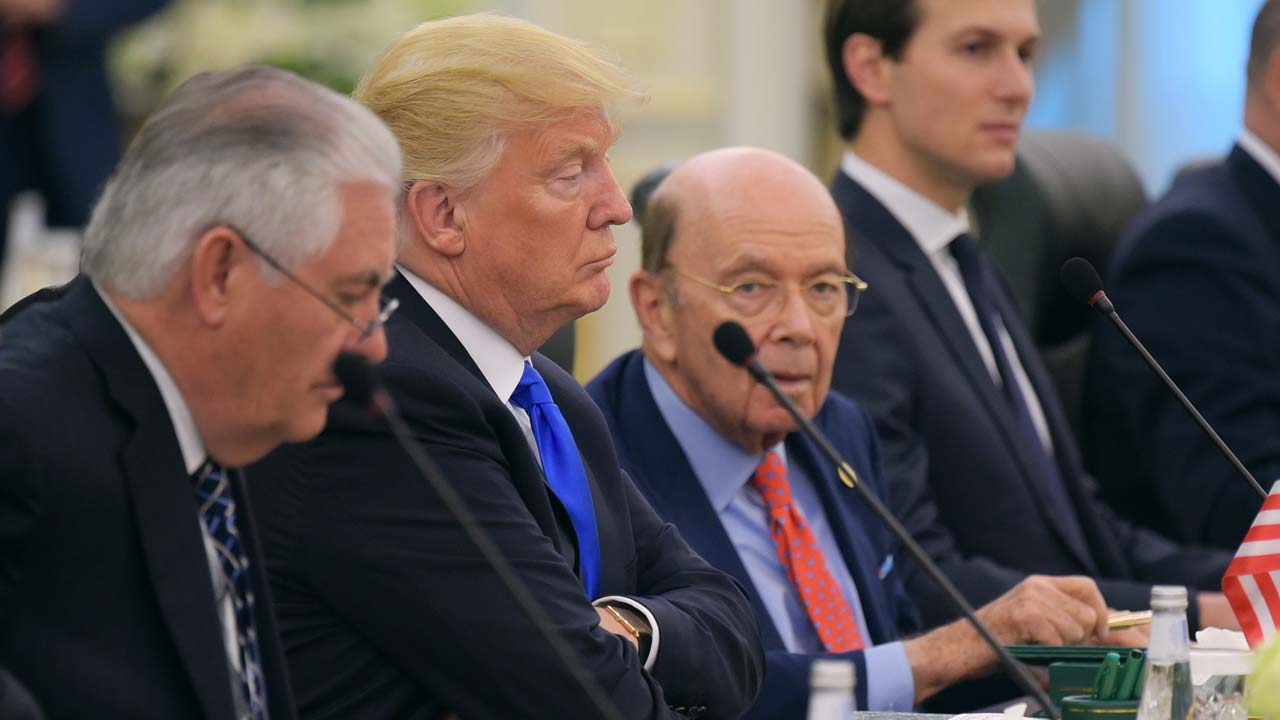(From L) US Secretary of State Rex Tillerson, US President Donald Trump, Commerce Secretary Wilbur Ross and advisor Jared Kuchner take part in bilateral meeting with Saudi Arabia's King Salman bin Abdulaziz al-Saud at the Saudi Royal Court in Riyadh on May 20, 2017. MANDEL NGAN / AFP
