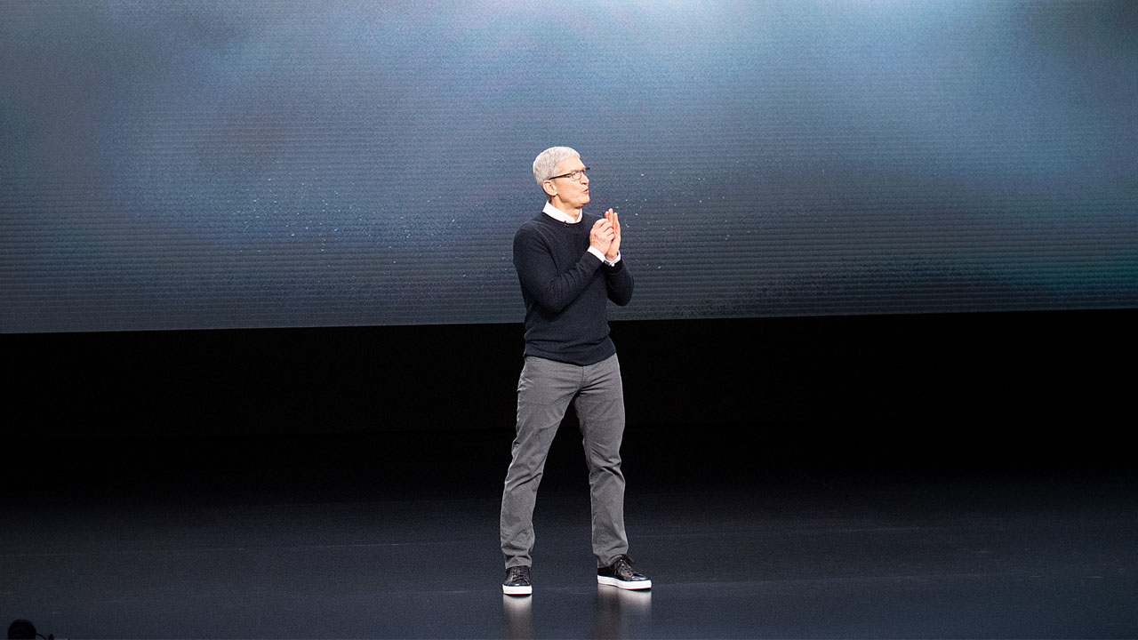 (FILES) In this file photo taken on March 25, 2019 Apple CEO Tim Cook speaks during an event launching Apple tv+ at Apple headquarters in Cupertino, California. (Photo by NOAH BERGER / AFP)