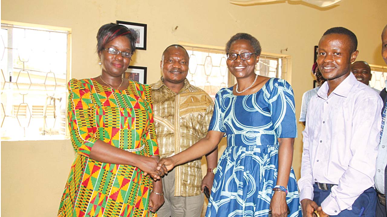 Dr. Oyelola congratulating Mrs. Funke Adesanya. Standing far right is Mr. Adefemi Adegoke