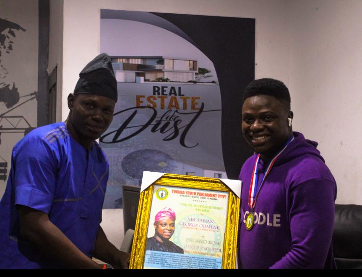 Yoruba Youth parliament (YYP) has conferred on Co-founder, Cuddle Realty, Fabian George the Yoruba youth leadership award in recognition of his achievements in the real estate sector.