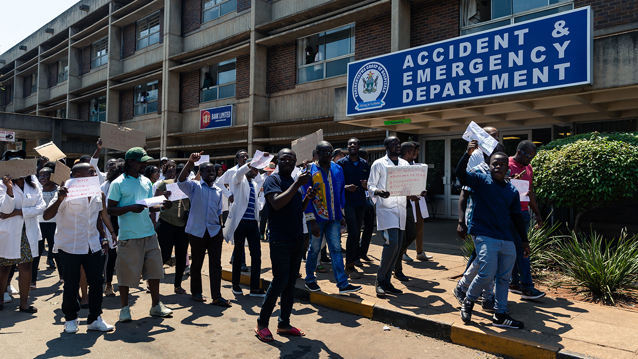 Striking doctors are demanding pay rises in a country still struggling with high inflation and fuel and food shortages after decades of economic crisis under former president Robert Mugabe, who died a week ago.