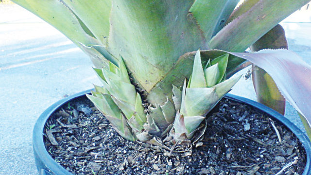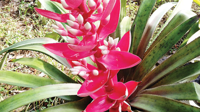 Bromeliads multiply by sending up offsets, or pups. In a natural growth cycle, a mature plant will send up a flower spike that includes small, sometimes insignificant flowers, surrounded by showy bracts (it’s really the bracts that people like in bromeliad flowers). The flower bracts are often long-lasting—sometimes for months.