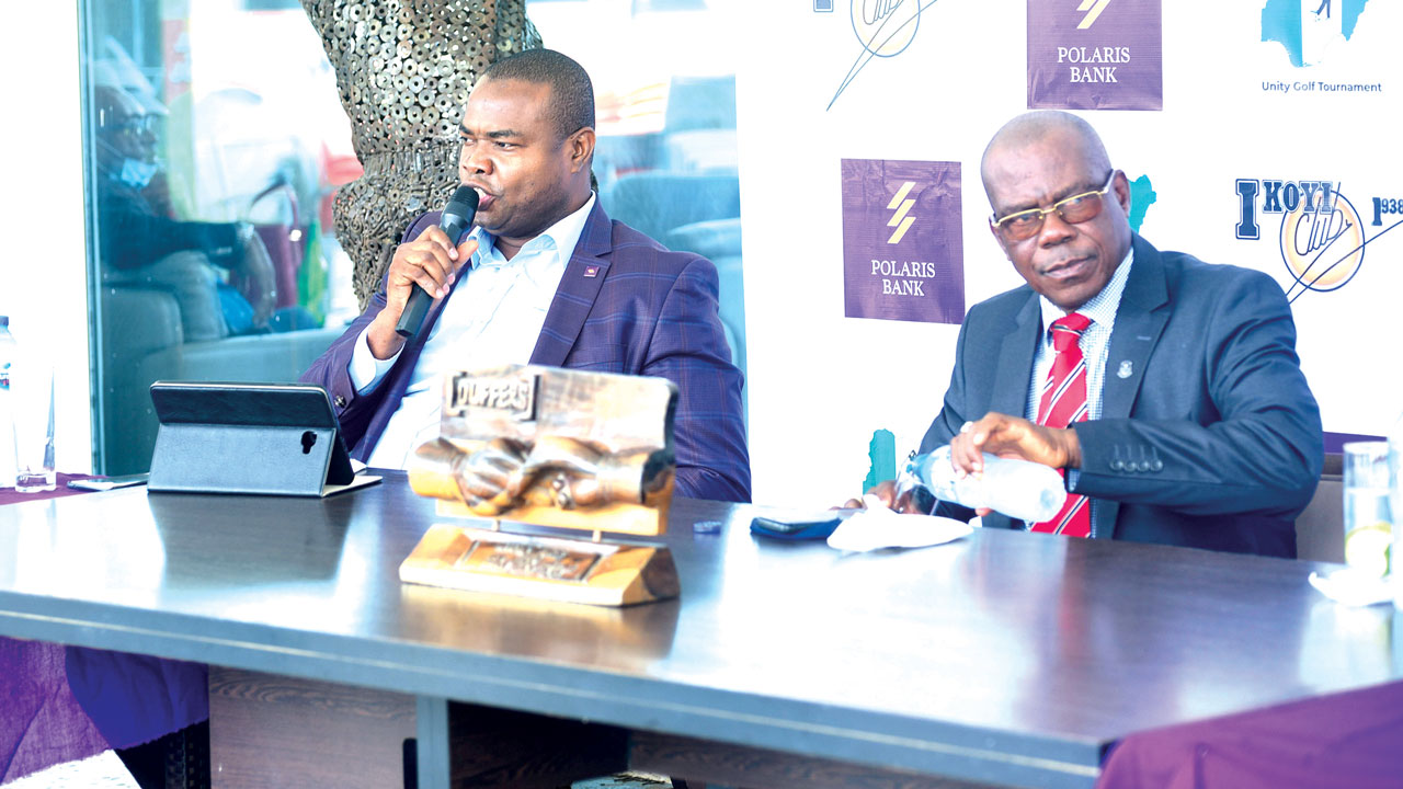 Head, Strategic Brand Management, Polaris Bank, Nduneche Ezurike; and Captain, Ikoyi Club 1938 Golf Section, Dr. Meckson Innocent Okoro at Unity Cup Golf Championship pre-tournament briefing in Lagos… on Friday.